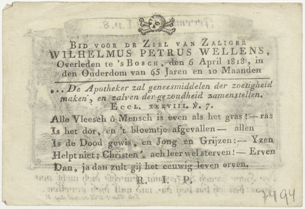 Vrees niet voor hen, want ik ben met u om u te bevrijden (Jer.1:8), kz. Bid voor ziel Wellens (+1818) Den Bosch