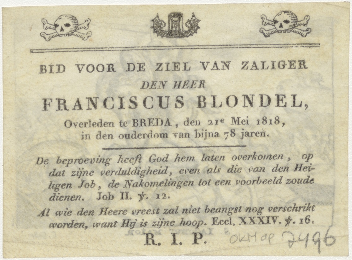 H. Jacobus Maior, kz. Bid voor ziel Blondel (+1818) Breda