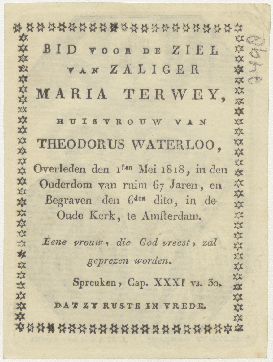 H. Aloysius van Gonzaga; H. Stanislas Kostka, kz. Bid voor ziel Maria Terwey-Waterloo (+1818) Amsterdam
