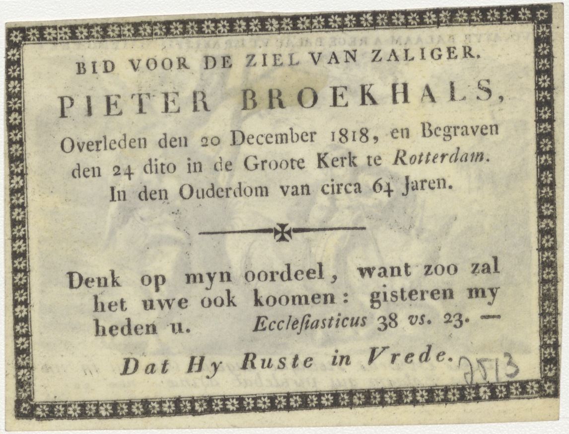 Baleam op de ezel met engel (Num. 22), kz. Bid voor ziel Broeckhals (+1818) Rotterdam