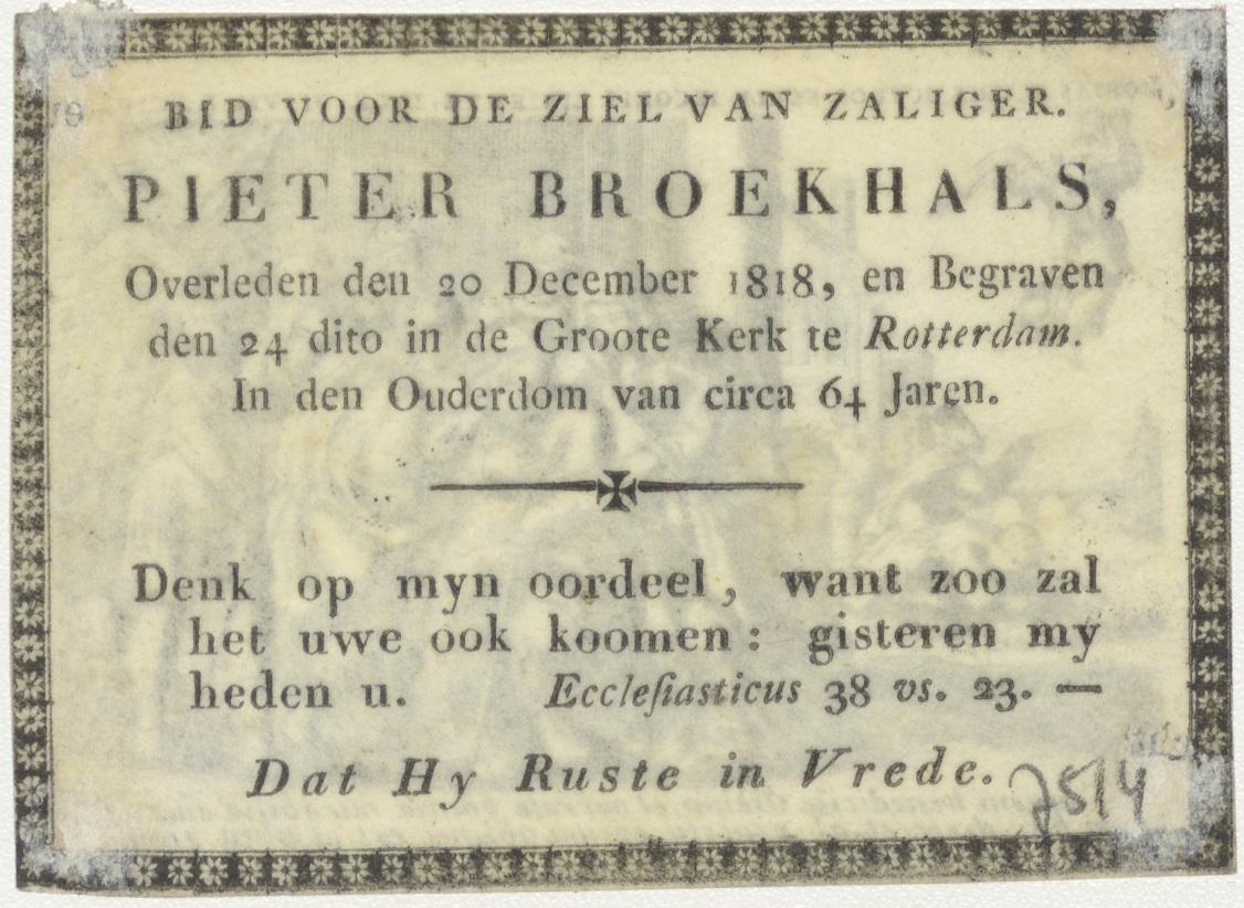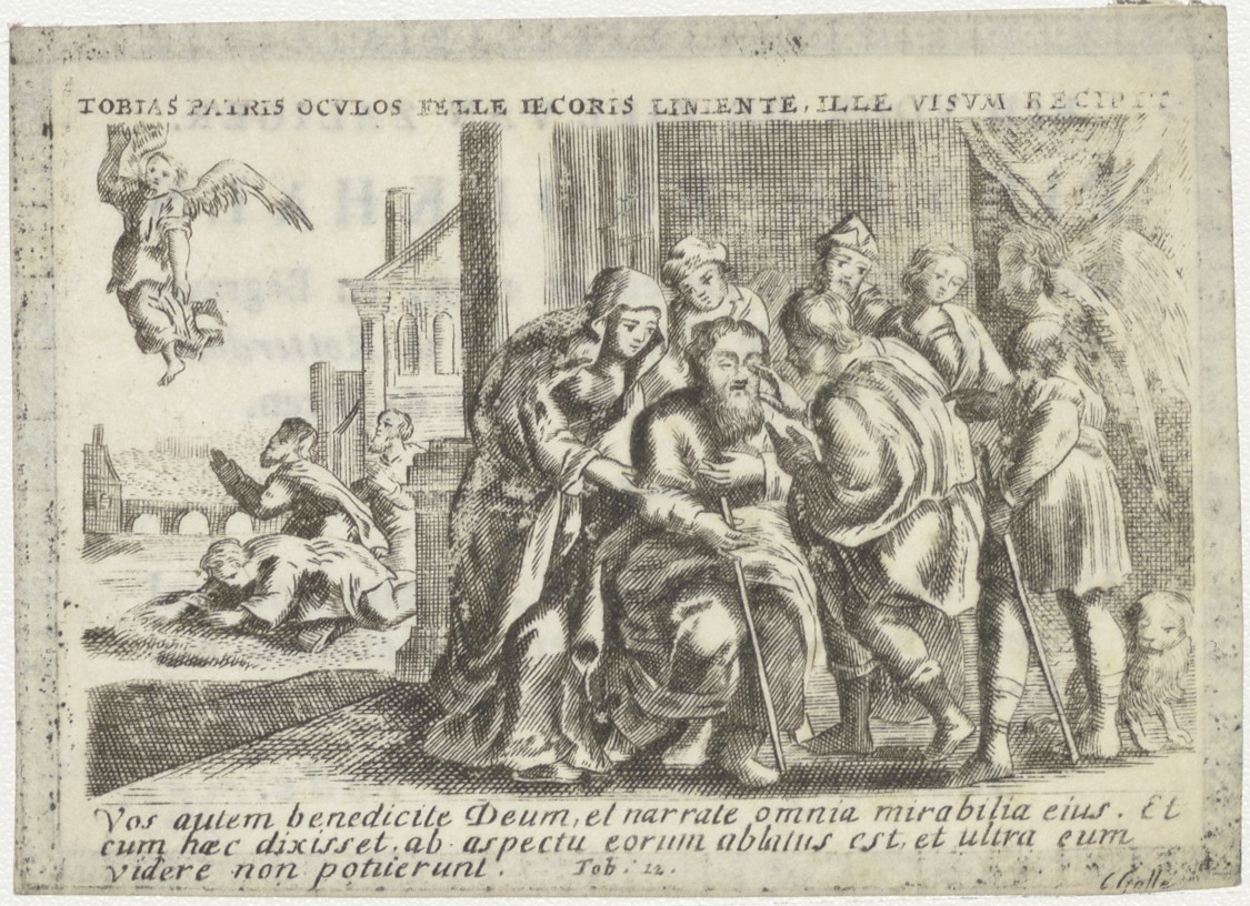 Tobias geneest zijn vader van blindheid (Tob. 12, kz. Bid voor ziel Broeckhals (+1818) Rotterdam