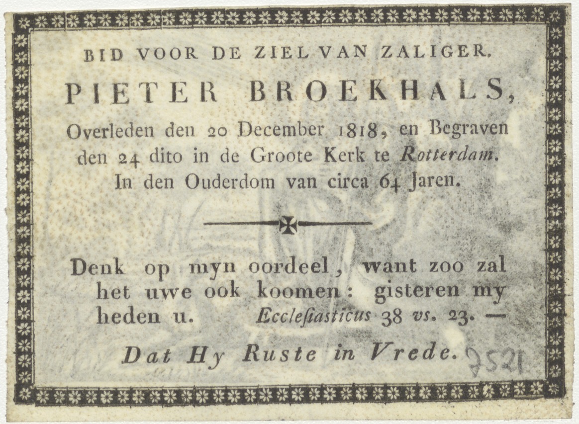 H. Rochus, kz. Bid voor ziel Broeckhals (+1818) Rotterdam