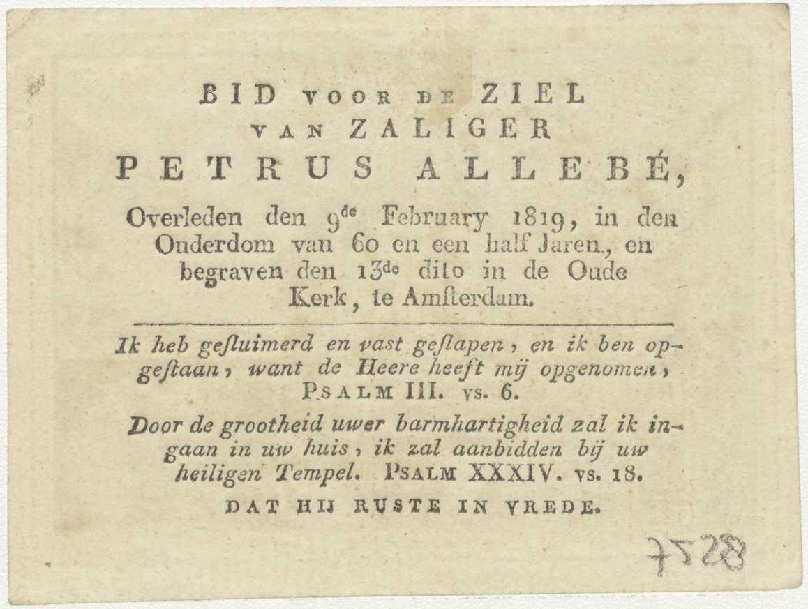 H. Anna, kz. Bid voor ziel Allebé (+1819) Amsterdam