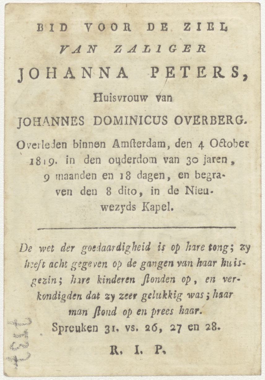 Maria Regina Caelorum, kz. Bid voor ziel Peters-Overberg (+1819) Amsterdam