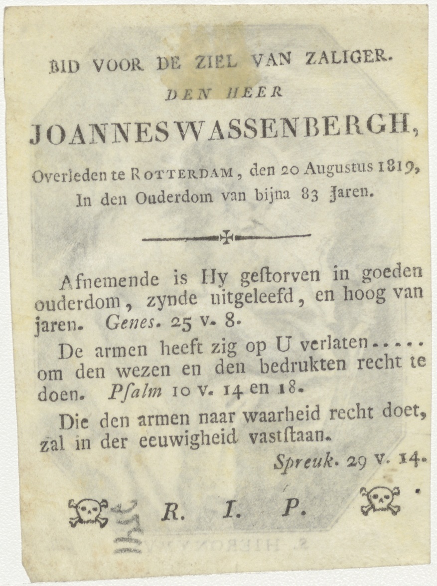 H. Hieronymus, kz. Bid voor ziel Wassenbergh (+1819) Rotterdam