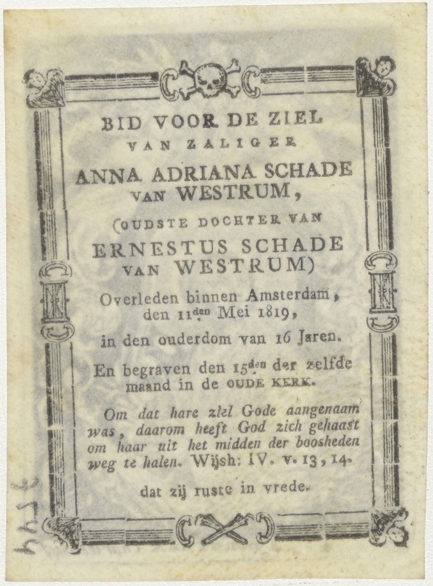 H. Dorothea, kz. Bid voor ziel Schade van Westrum (+1819) Amsterdam