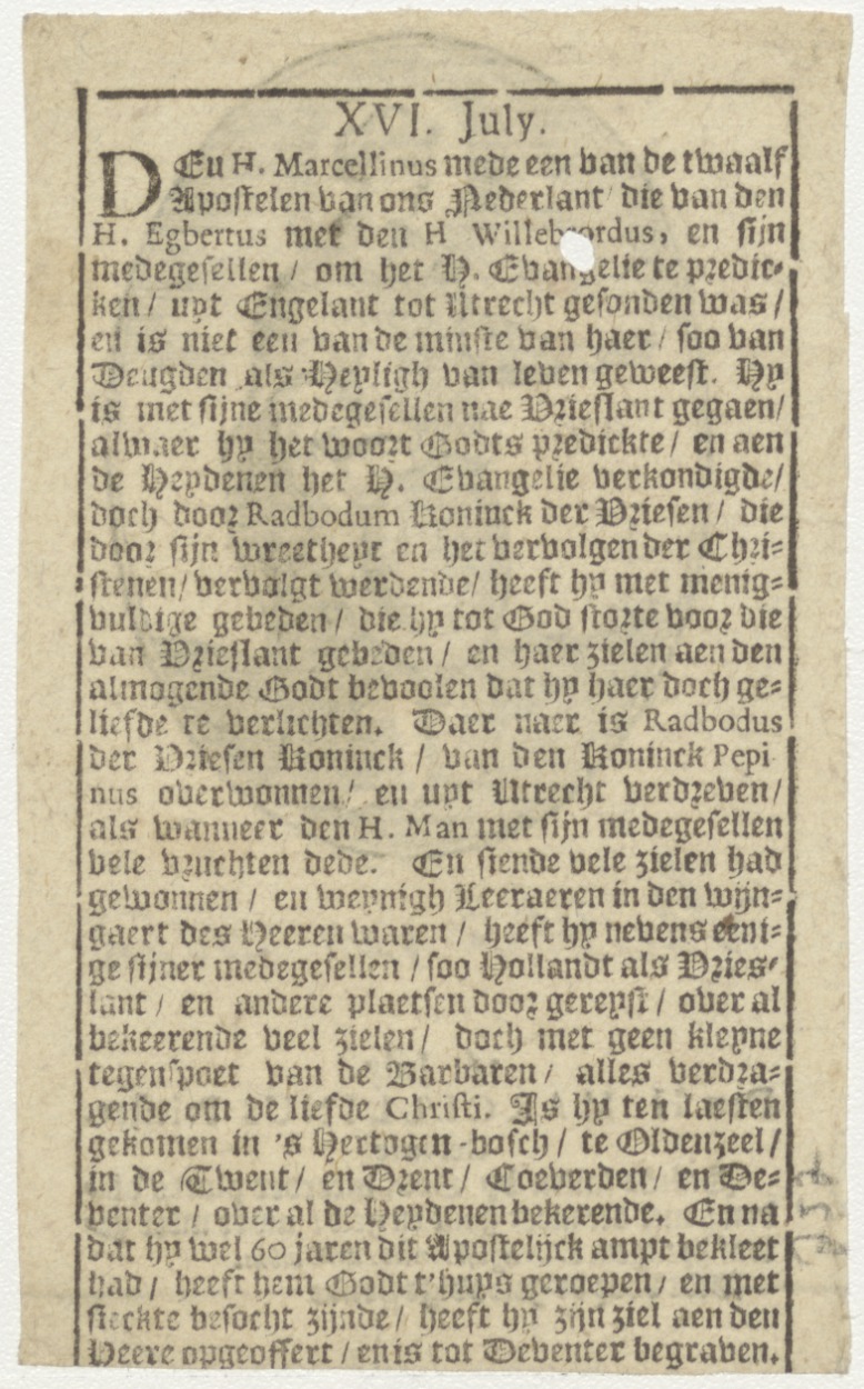 H. Marcellinus, priester, naamfeest (16 juli), gebed, met "... van Oosten", kz. levensbeschrijving