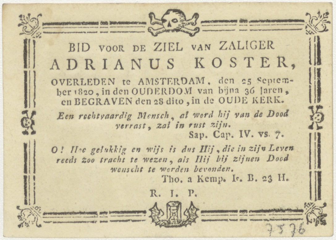 Annunciatie (Luc 1:28-35), kz. Bid voor ziel Koster (+1820) Amsterdam