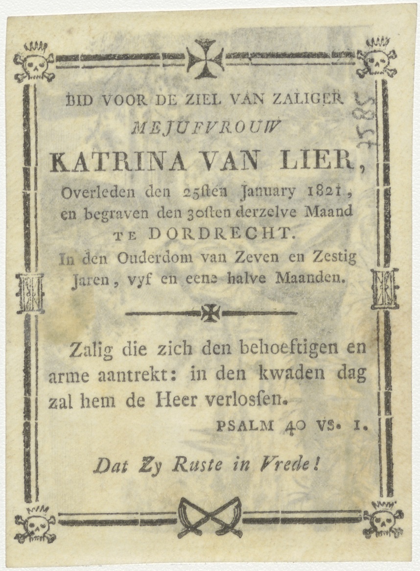 Maria met Christuskind, kz. Bid voor ziel Van Lier (+1821) Dordrecht