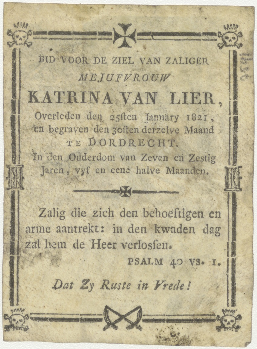 Maria(?), kz. Bid voor ziel Van Lier (+1821) Dordrecht