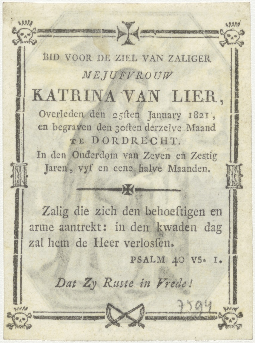 H. Clara, kz. Bid voor ziel Van Lier (+1821) Dordrecht