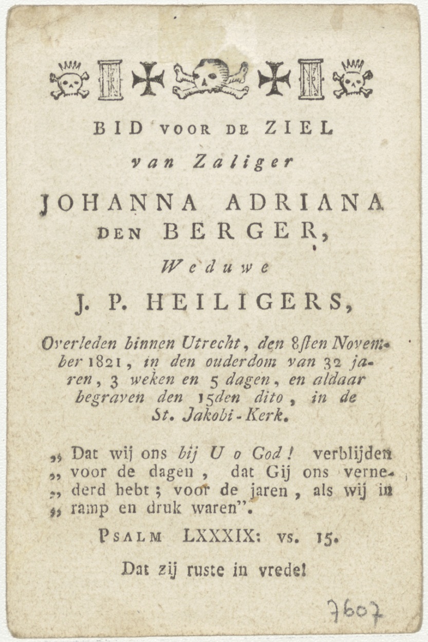 Dood van Abel (Frans), kz. Bid voor ziel Der Berger-Heiligers (+1821) Utrecht