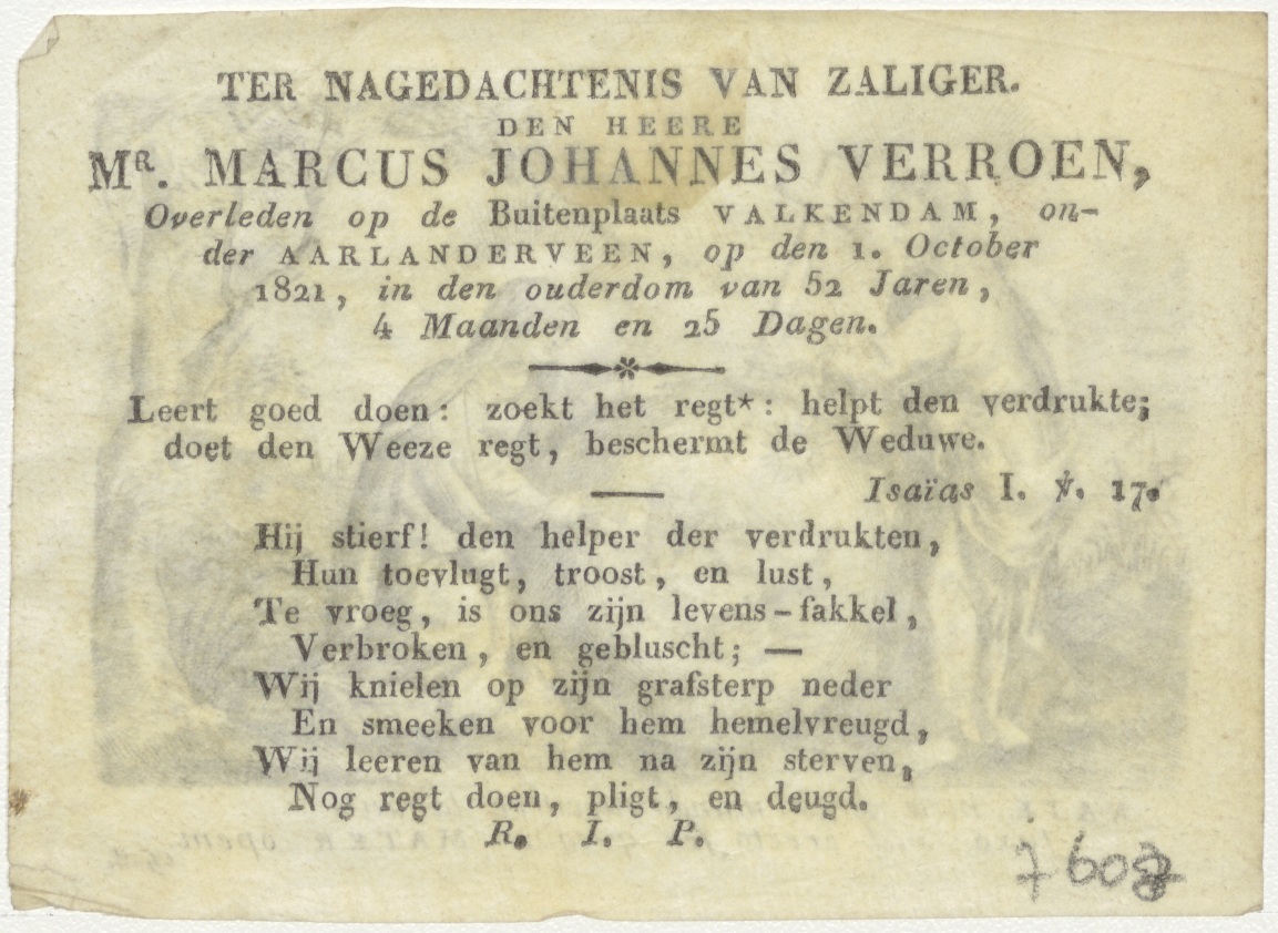 Christus en Maria met aardbol, kz. Bid voor ziel Verroen (+1821) Aarlanderveen
