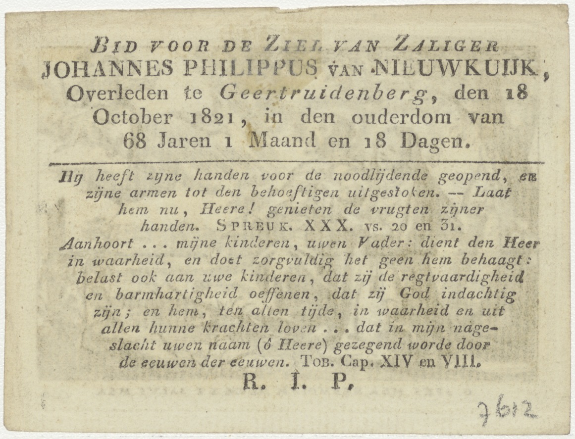 H. Familie met H. Drieeeheid, kz. Bid voor ziel Van Nieuwuuyk (+1821)
