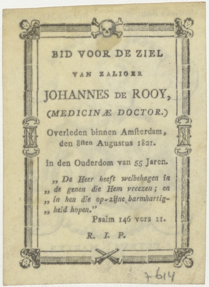 H. Petrus, martelaar, kz. Bid voor ziel De Rooy (+1821) Amsterdam