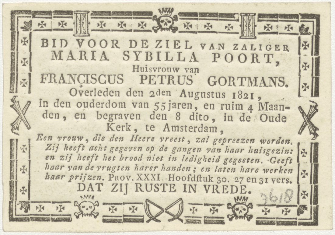 Herbergen der vreemdelingen (Mat.25:35), kz. Bid voor ziel Port-Gortmans (+1821) Amsterdam