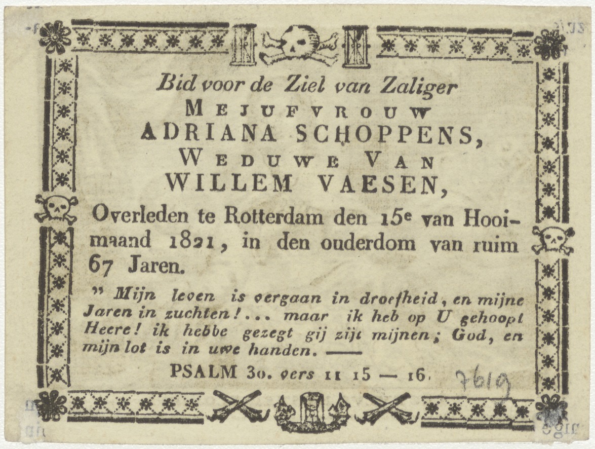 H. Familie, huiselijke scène, kz. Bid voor ziel Schoppers-Vaesen (+1821) Rotterdam