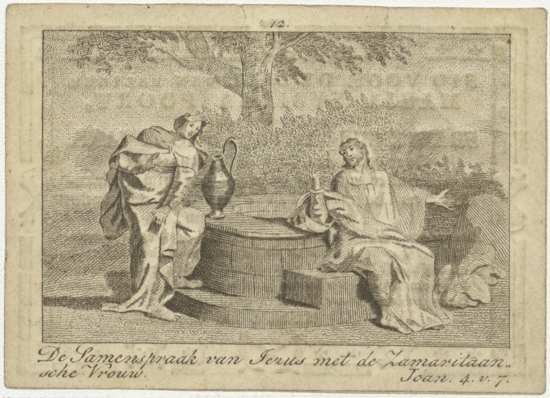 Christus en de Samaritaanse vrouw bij de bron, kz. Bid voor ziel Poort-Gortmans (+1821) Amsterdam