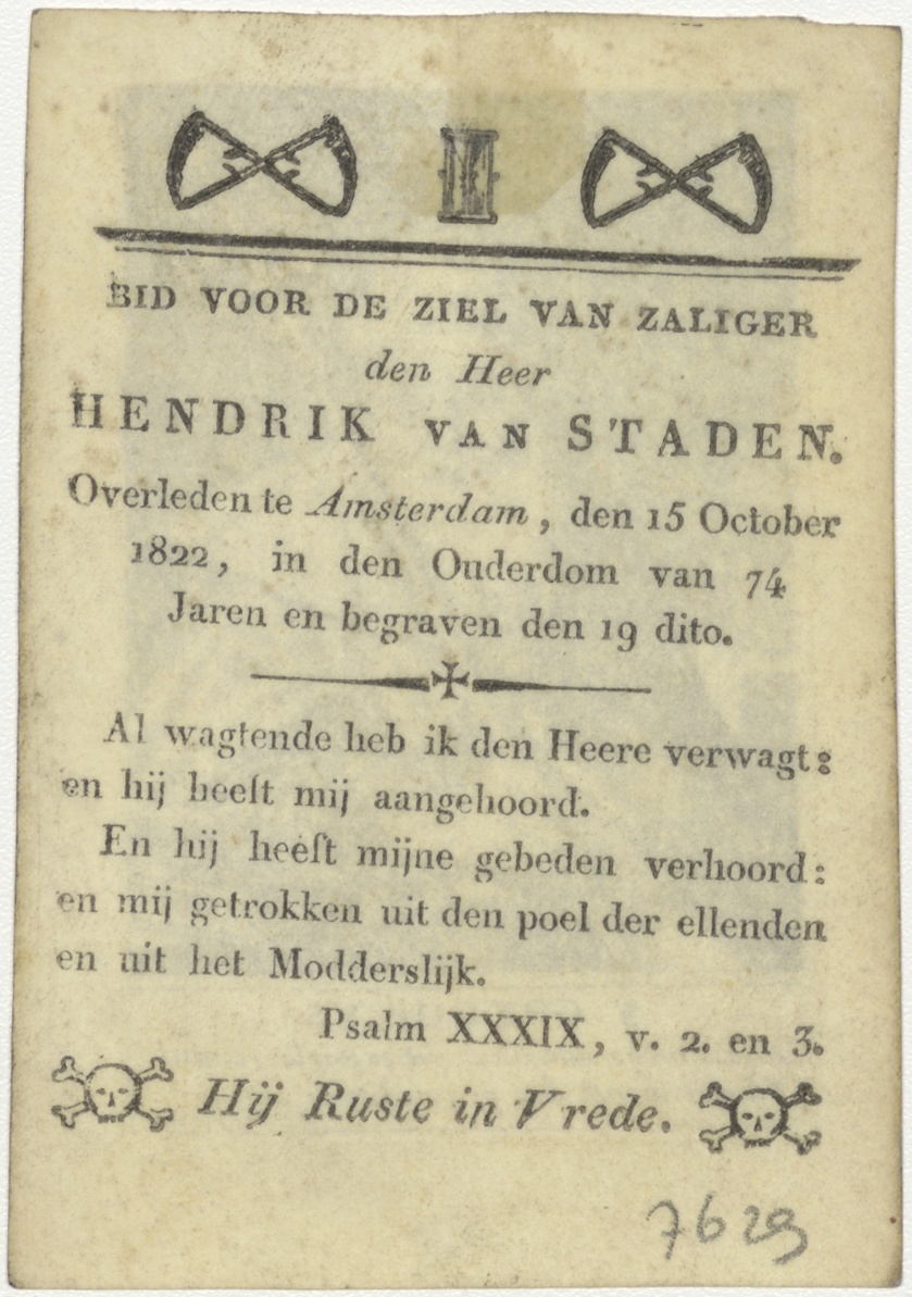 H. Gregorius, kz. Bid voor ziel Van Staden (+1822) Amsterdam