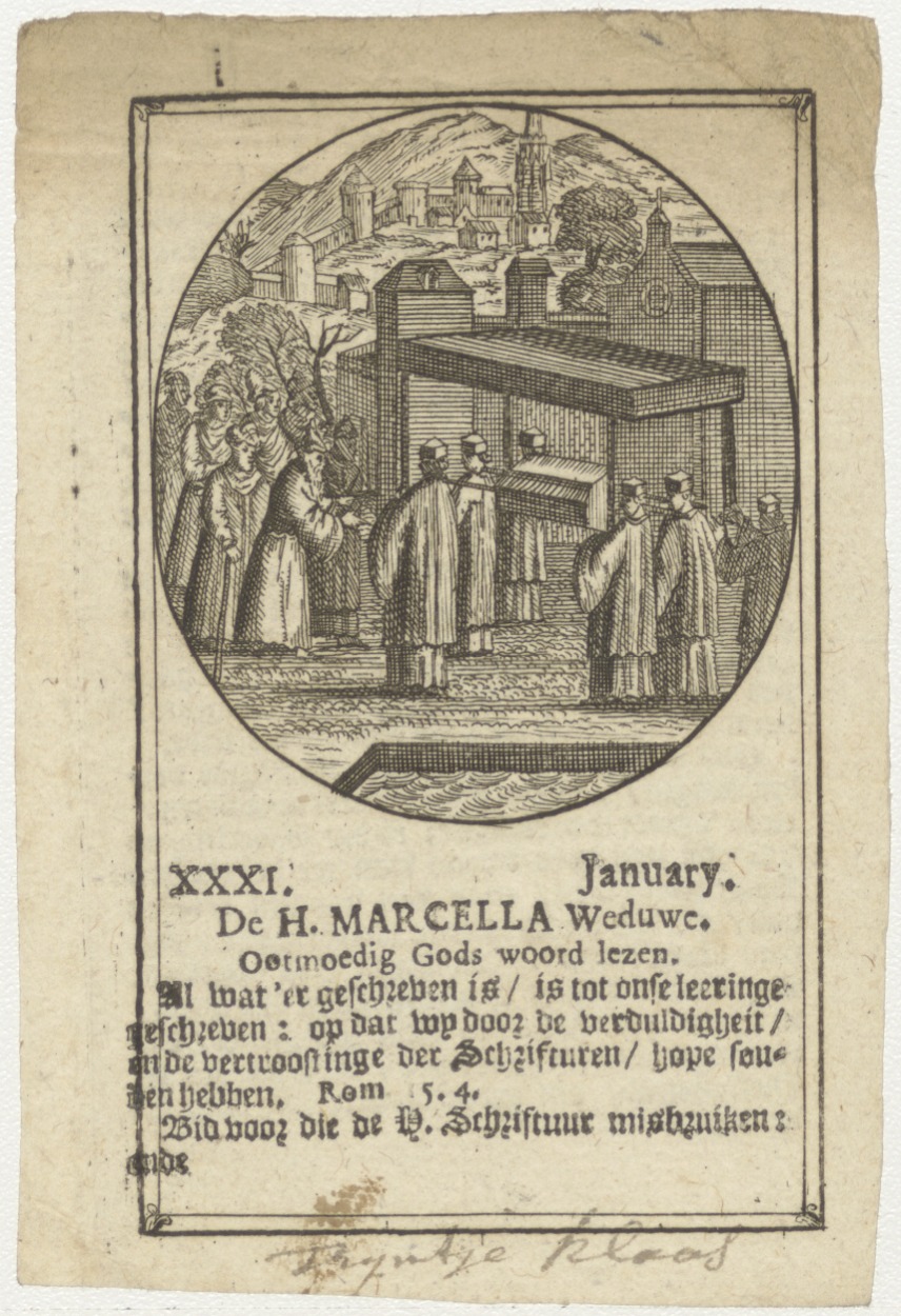 H. Marcella, weduwe, naamfeest (31 januari), met gebed, kz. Klaas;gebed;
