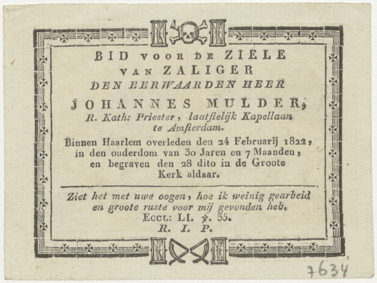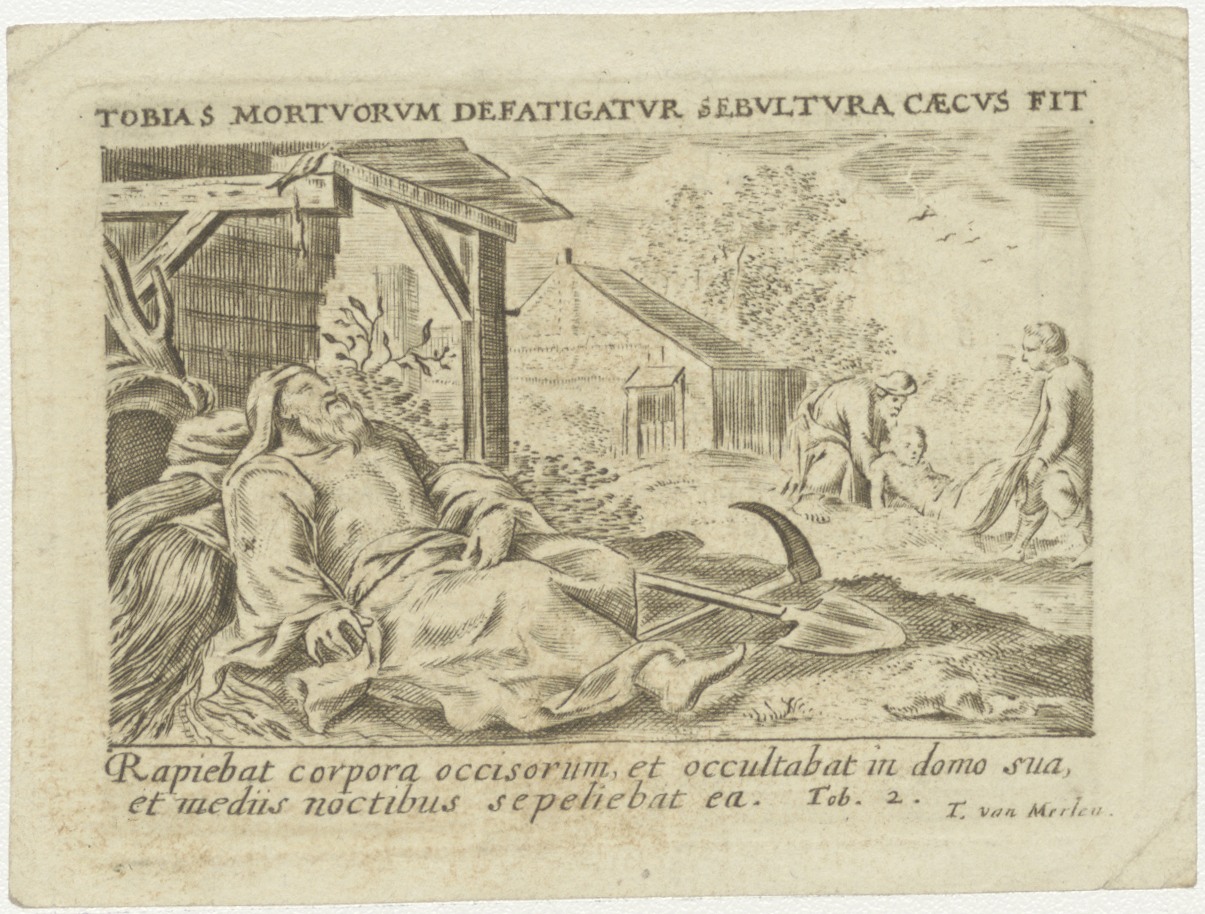 Tobias wordt blind (Tob. 2), kz. Religieus; bid voor ziel Johannes Mulder (+1822) Haarlem, priester, kapellaan te Amsterdam