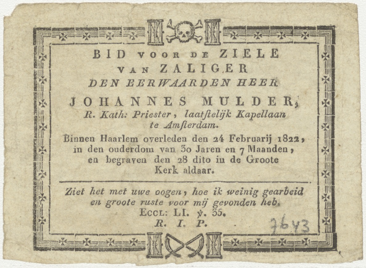 Anna te drieën, kz. Religieus; bid voor ziel Johannes Mulder (+1822) Haarlem, priester, kapellaan te Amsterdam