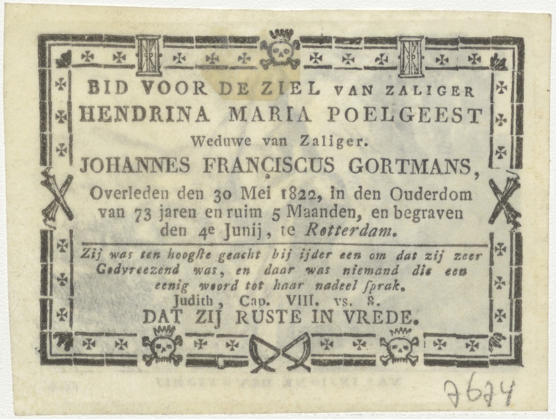 Maria(?), vrouw in landschap, kz. Bid voor ziel Gortmans-Poelgeest (+1822) Rotterdam