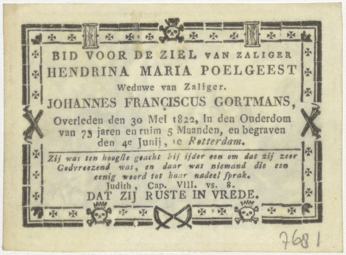 Baleam en de engel (Num. 22), kz. Bid voor ziel Gortmans-Poelgeest (+1822) Rotterdam
