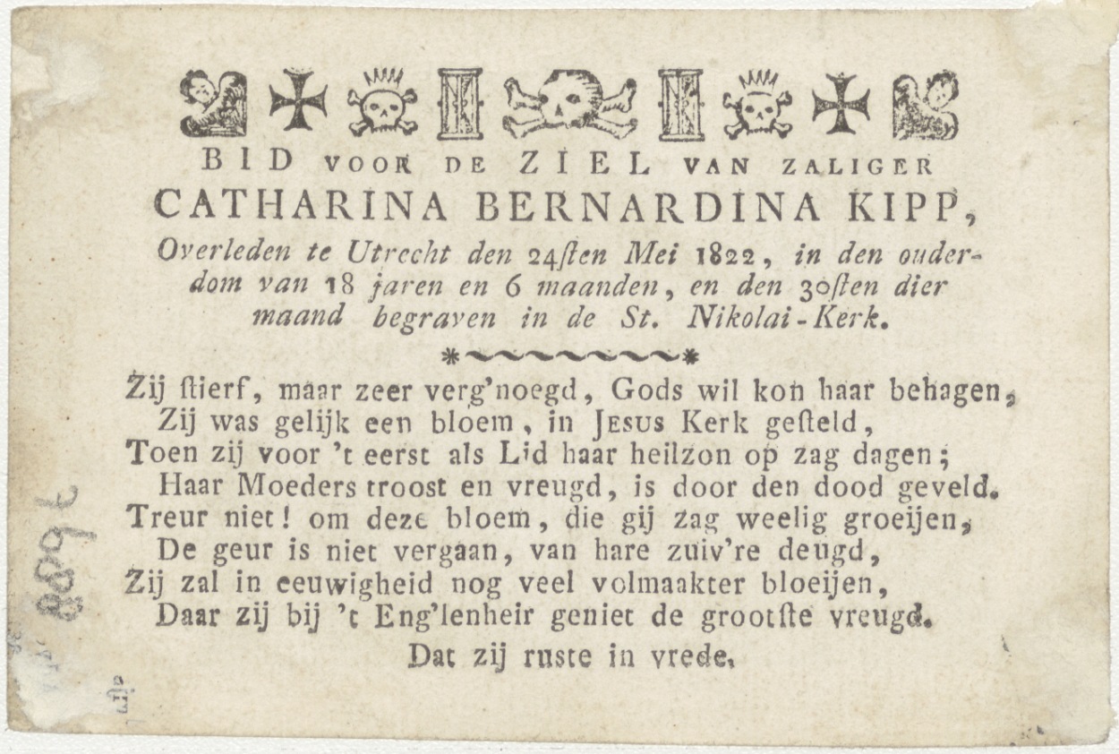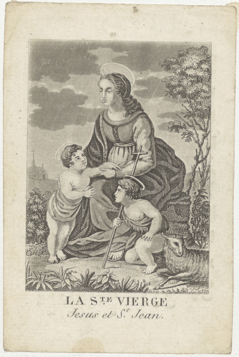 Maria met Christuskind en Johannes (Frans), kz. Bid voor ziel Kipp (+1822) Utrecht