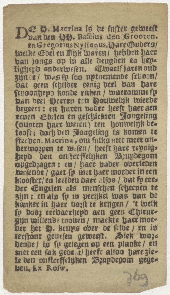 H. Macrina, maagd, naamfeest (19 juli), met gebed, kz. Wittert;gebed;
