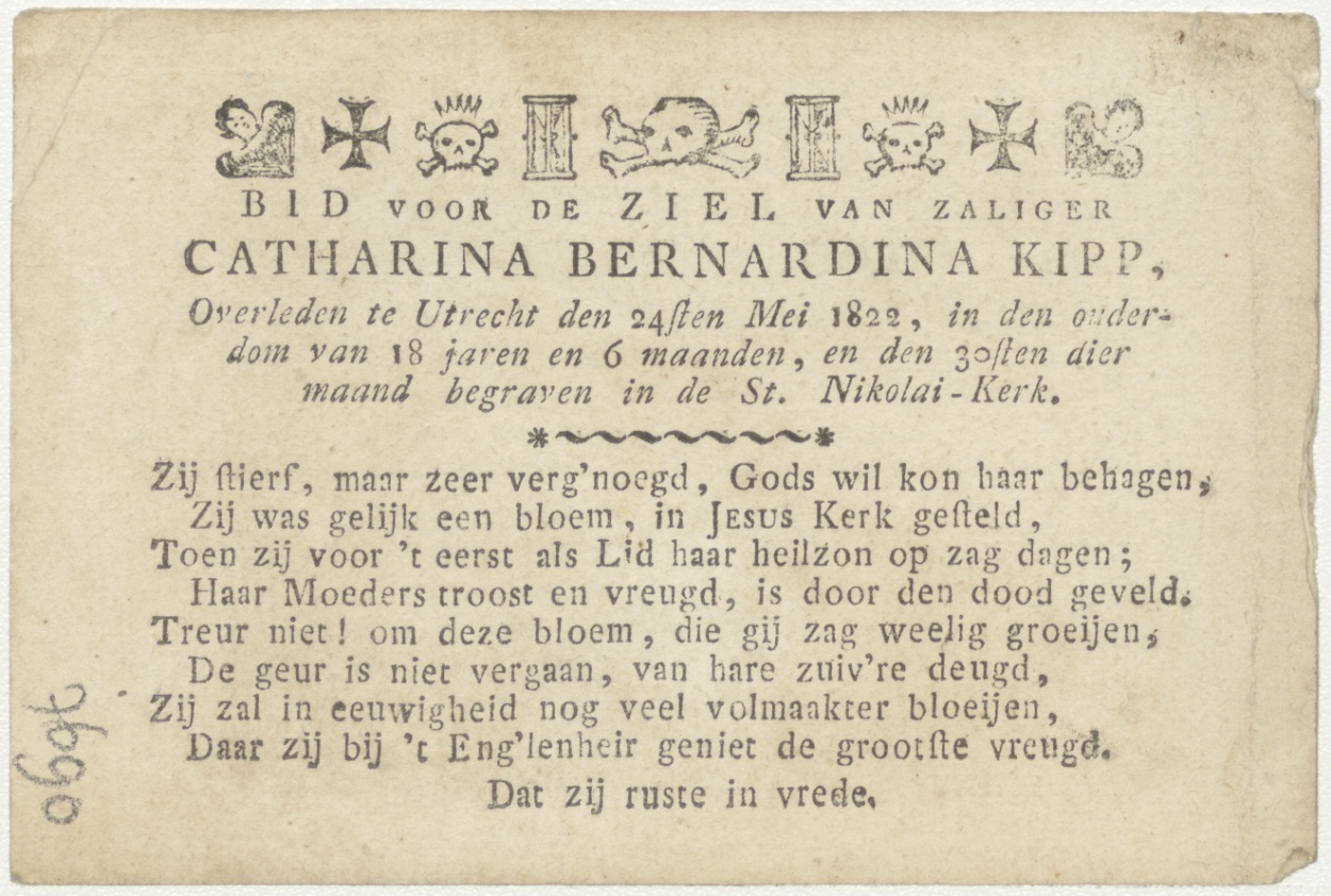 Adam en Eva uit het paradijs verjaagd (Frans), kz. Bid voor ziel Kipp (+1822) Utrecht