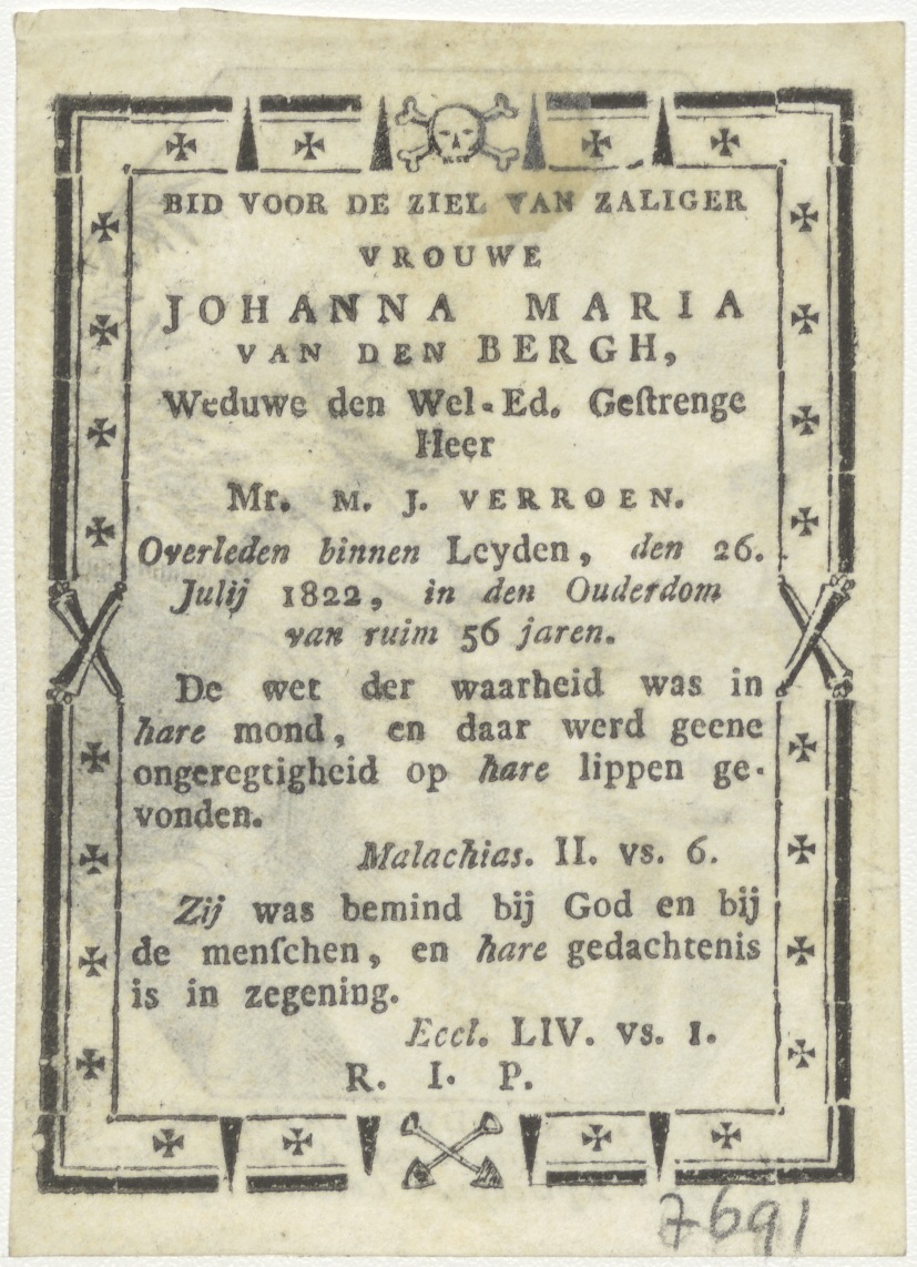 H. Alexander Paulius, kz. Bid voor ziel Van den Bergh-Verroen (+1822) Leiden