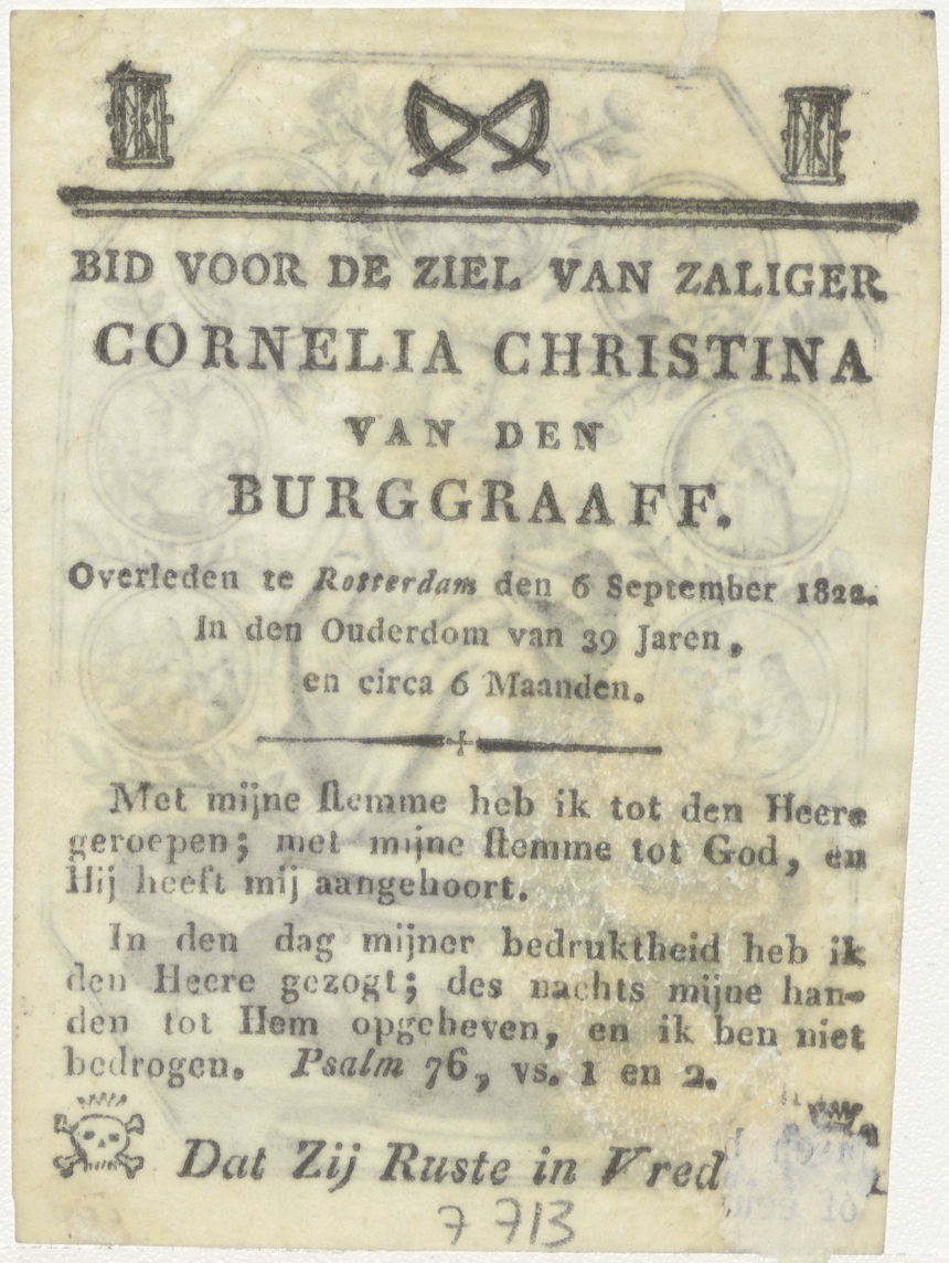 Maria met kind, kz. Bid voor ziel Van den Burggraaff (+1822) Rotterdam