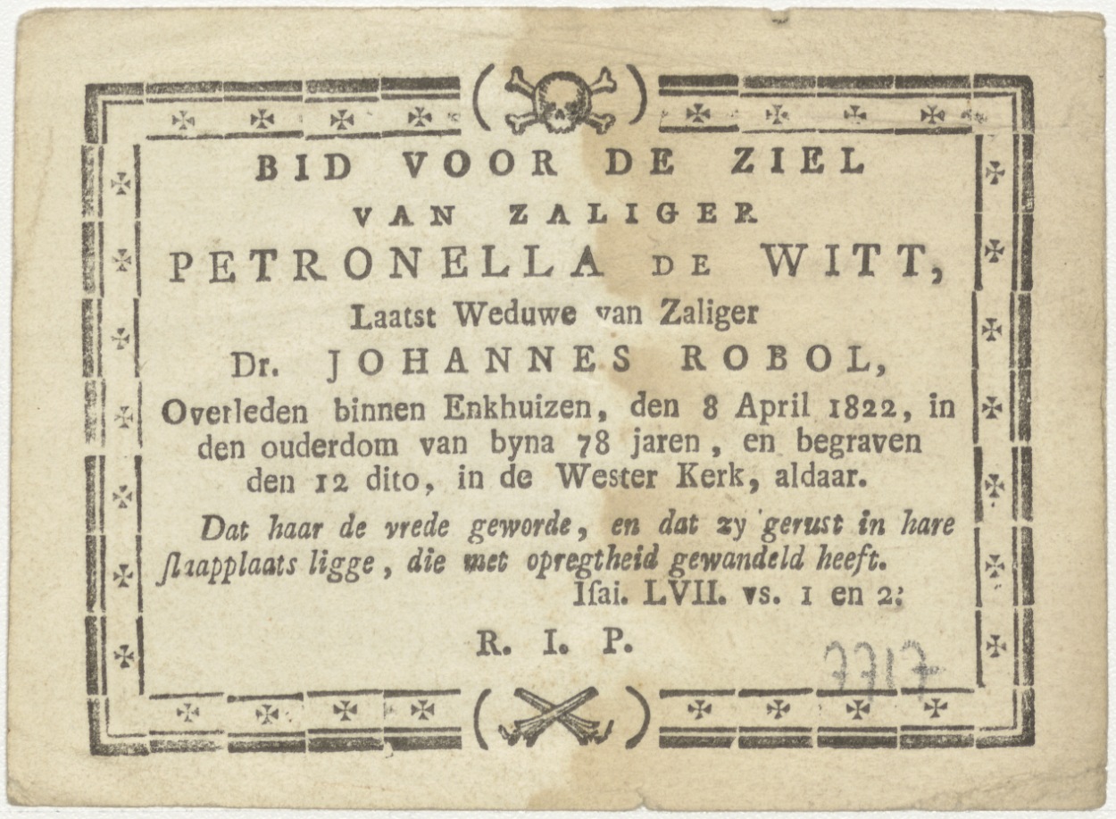 Christus en de Emmausgangers, kz. Bid voor ziel Petronella de Witt (+1822) Enkhuizen, weduwe van Johannes Robol