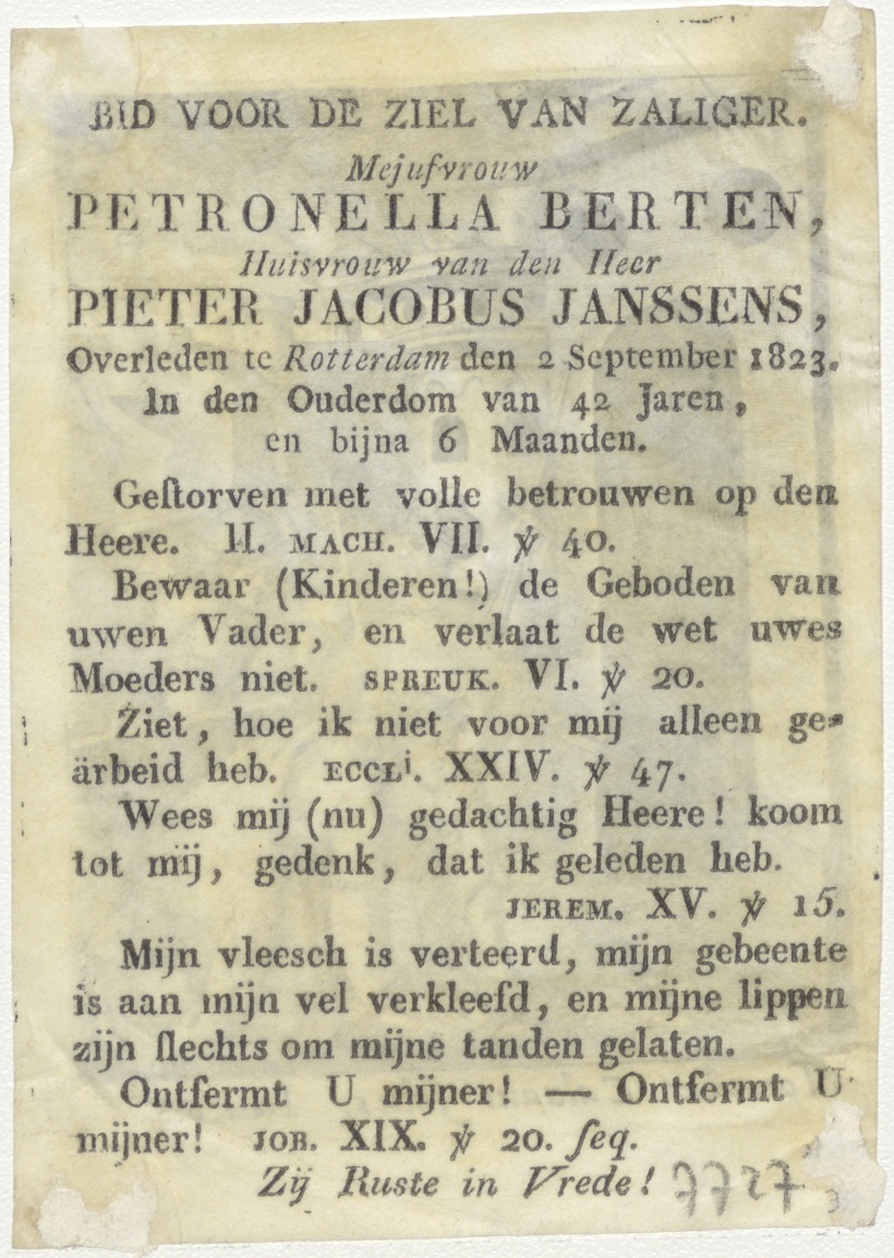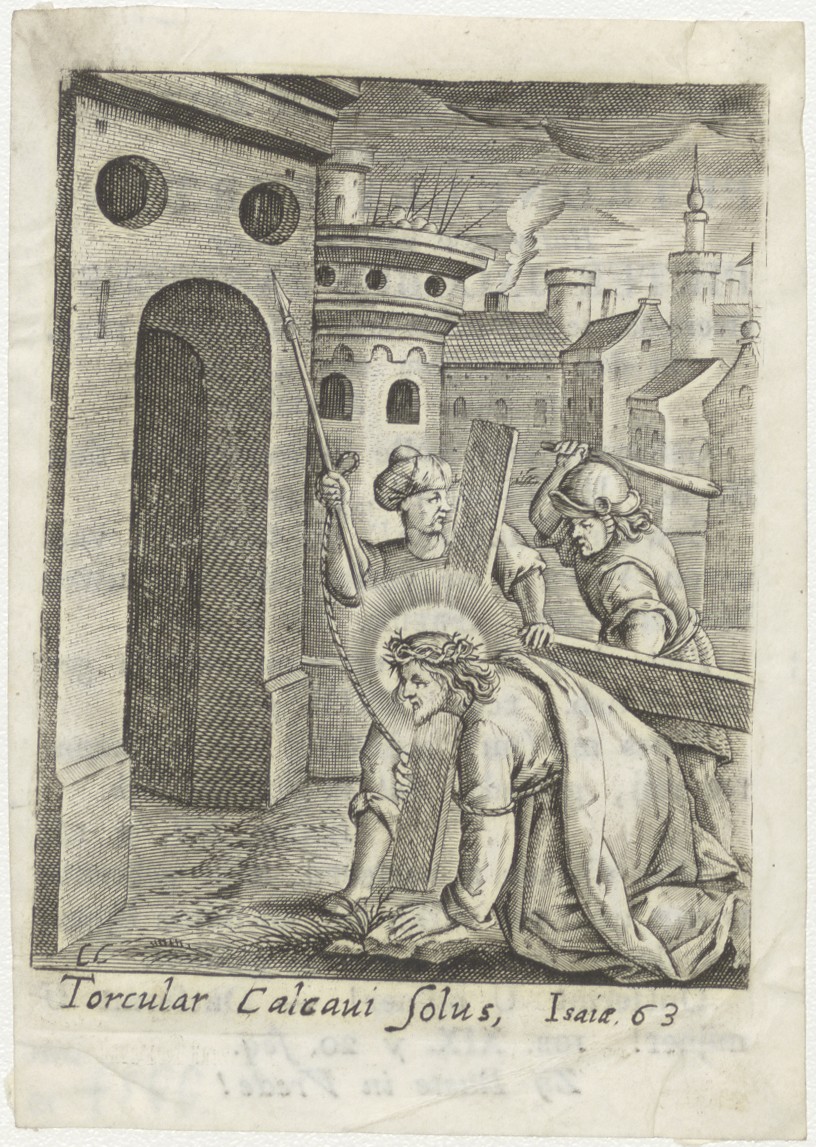 Val van Christus onder het kruis (Jes. 63), kz. Bid voor ziel Janssen-Berten (+1823) Rotterdam