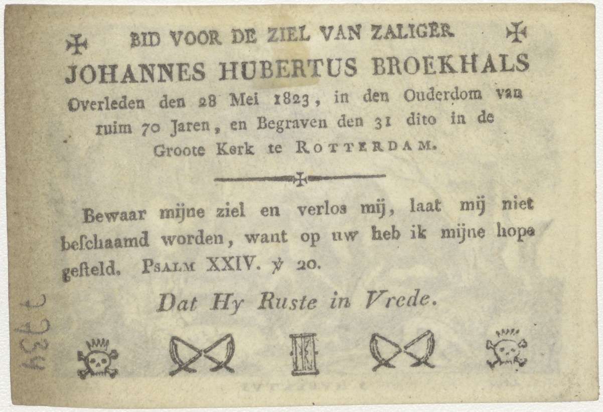 H. Hubertus, kz. Bid voor ziel Broekhals (+1823) Rotterdam