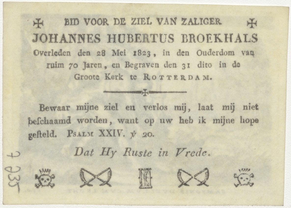 Samson en de leeuw, kz. Bid voor ziel Broekhals (+1823) Rotterdam