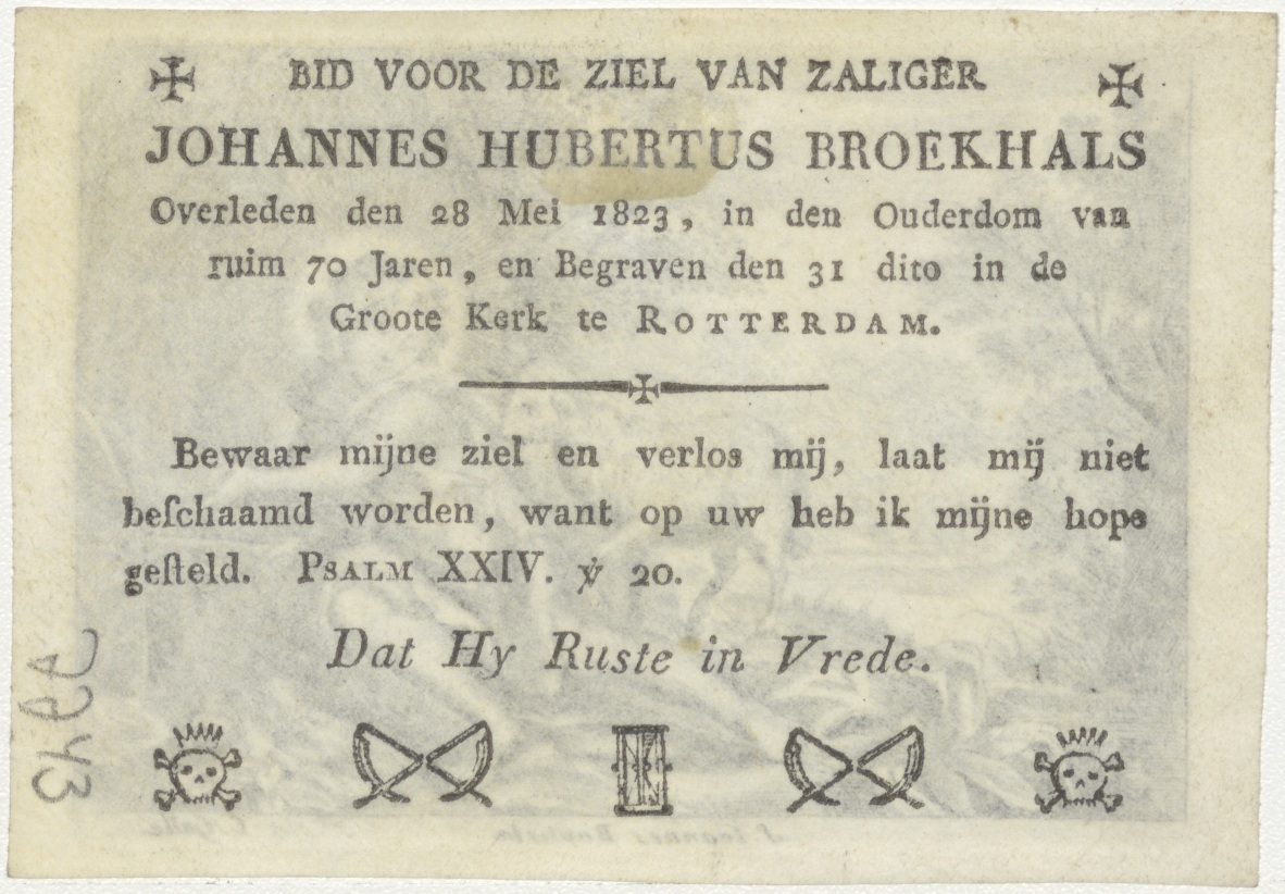 H. Johannes de Doper, kz. Bid voor ziel Broekhals (+1823) Rotterdam