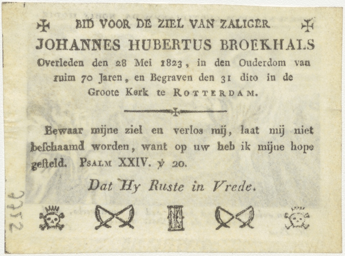 Wonder van Christus; de wonderbaarlijke broodvermenigvuldiging, kz. Bid voor ziel Broekhals (+1823) Rotterdam