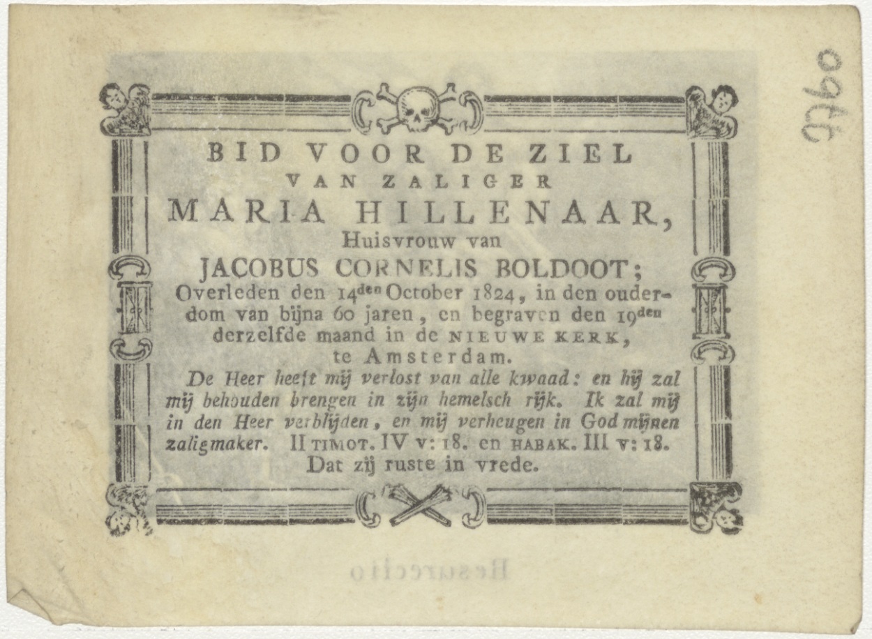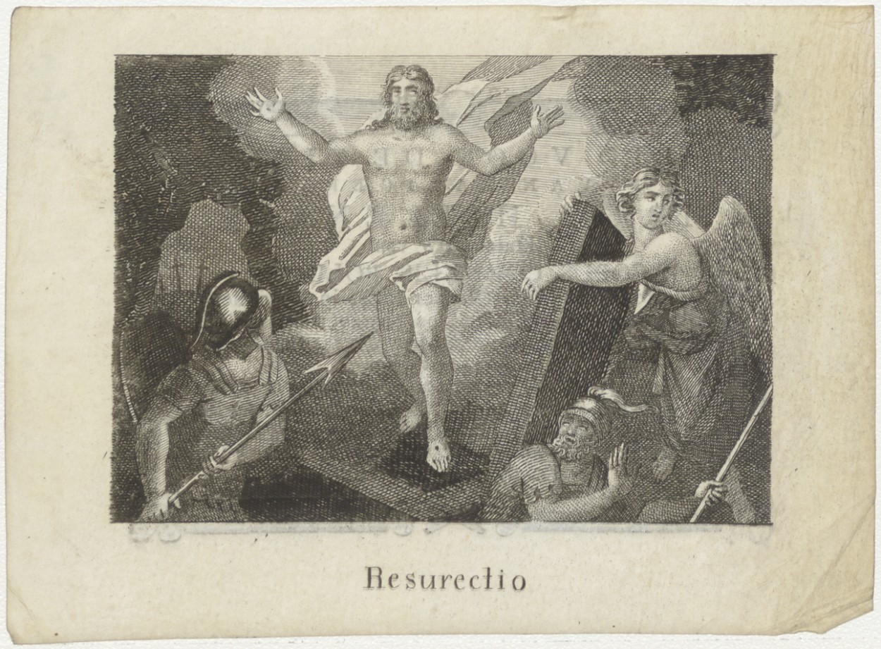 Verrijzenis van Christus, kz. Bid voor ziel Maria Hillenaar (+1824) Amsterdam, huisvrouw van Jacobus Cornelis Boldoot