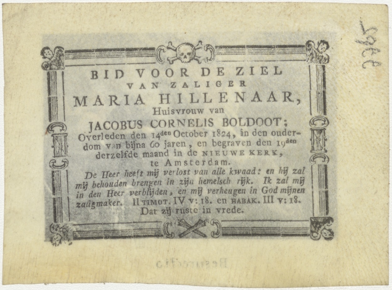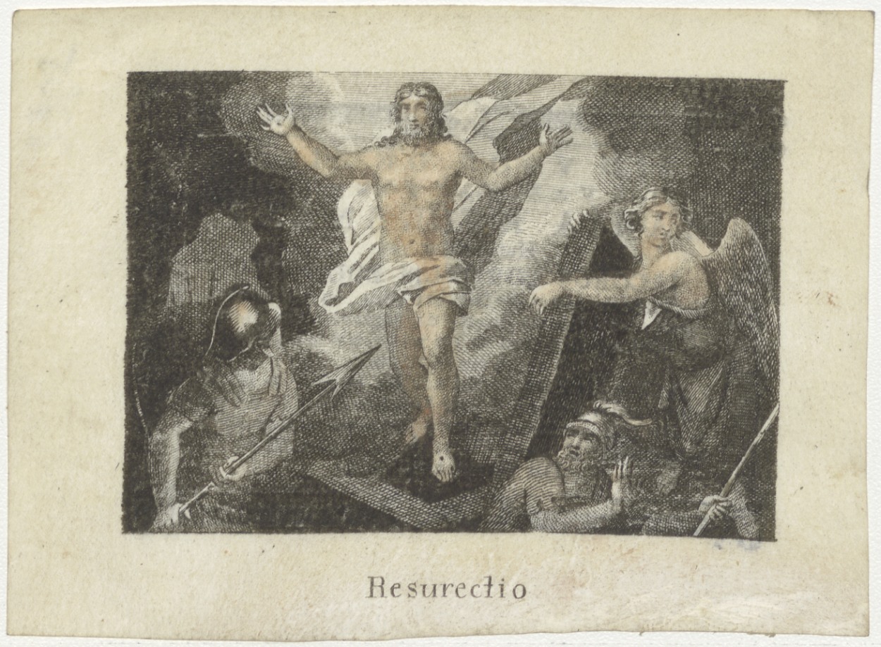 Verrijzenis van Christus, kz. Bid voor ziel Maria Hillenaar (+1824) Amsterdam, huisvrouw van Jacobus Cornelis BoldootAmsterdam