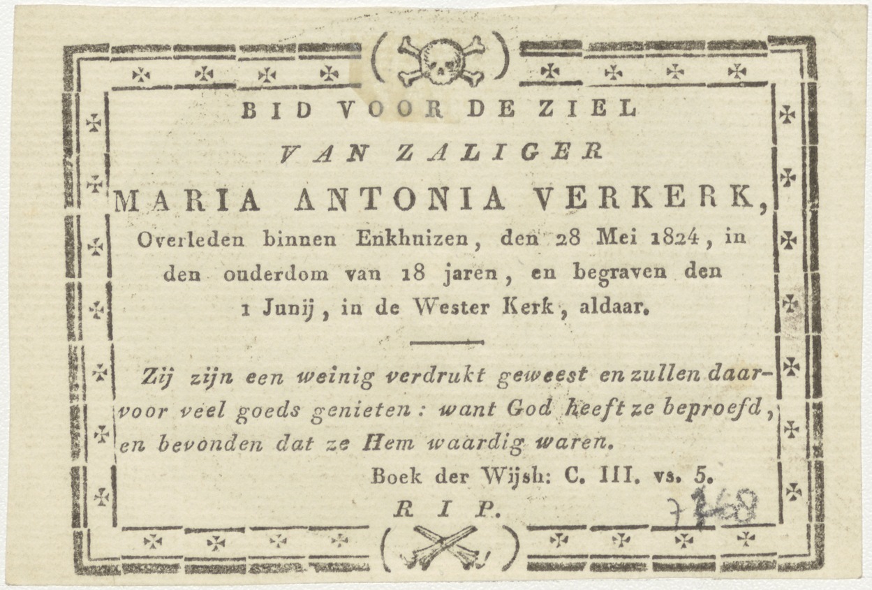 H. Johannes de Doper, kz. Bid voor ziel Verkerk, (+1824) Enkhuizen