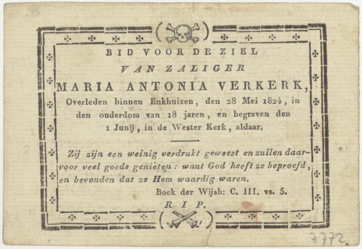 Verrijzenis van Christus, kz. Bid voor ziel Verkerk, (+1824) Enkhuizen