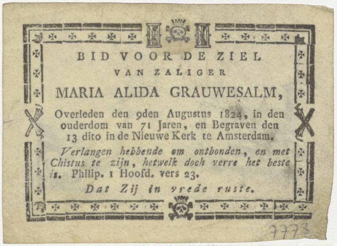 Amor divinus en Anima, kz. Bid voor ziel Grauwesalm (+1824) Amsterdam