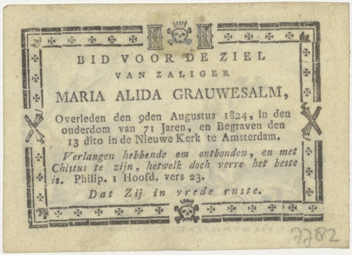 Christus als jongeling met martelwerktuigen, kz. Bid voor ziel Grauwesalm (+1824) Amsterdam