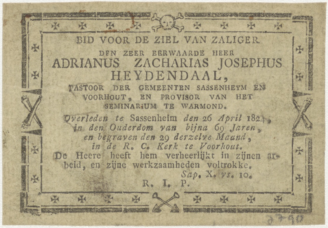 H. Augustinus, kz. Religieus; bid voor ziel Adrianus Heyendaal (+1824) Sassenheim