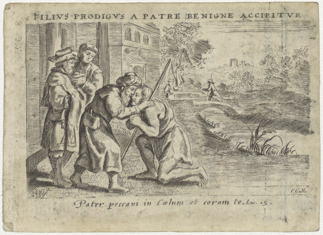 Terugkeer van de verloren zoon, kz. Bid voor ziel Van Bemmele-de Groot (+1824) Delft