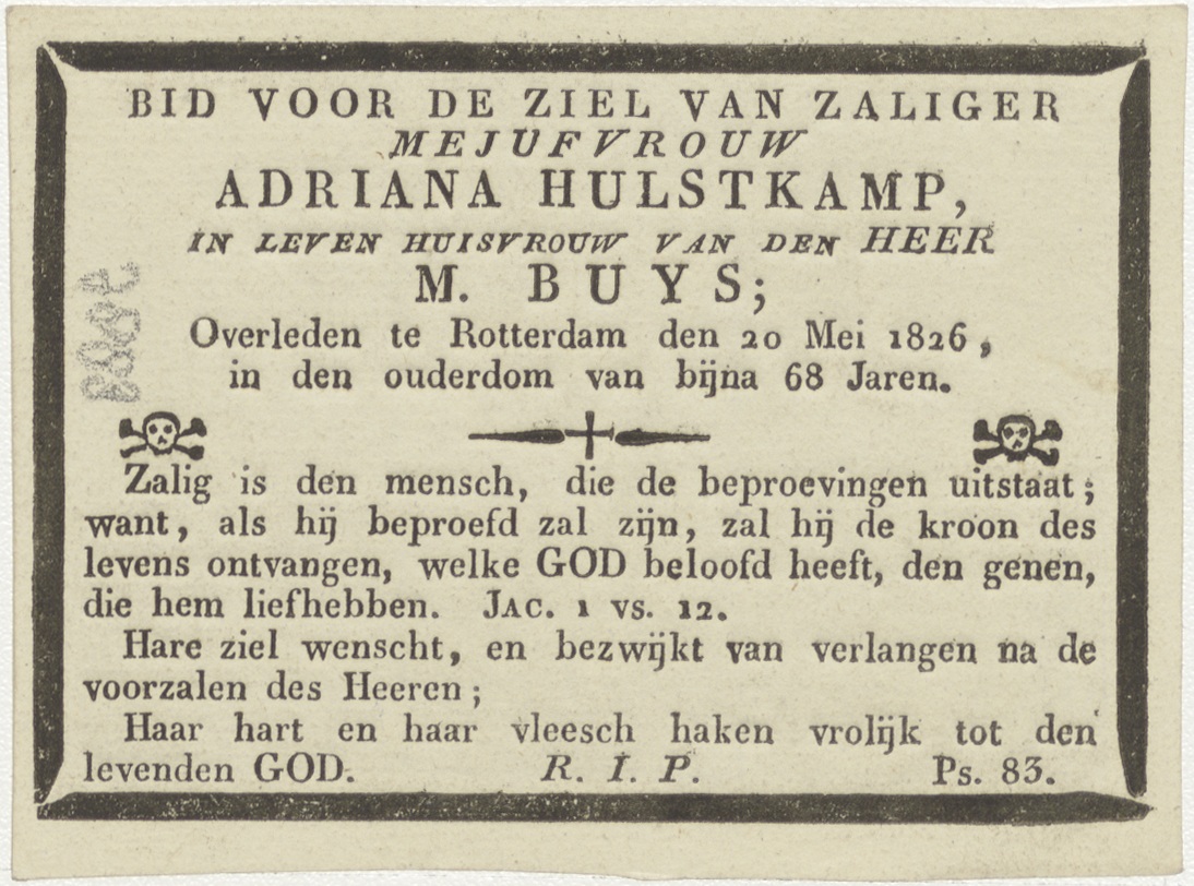 Christus ontvangt het H. Sacrament in de tuin van Getsemané, kz. Bid voor ziel Buys-Hulstkamp (+1826) Rotterdam