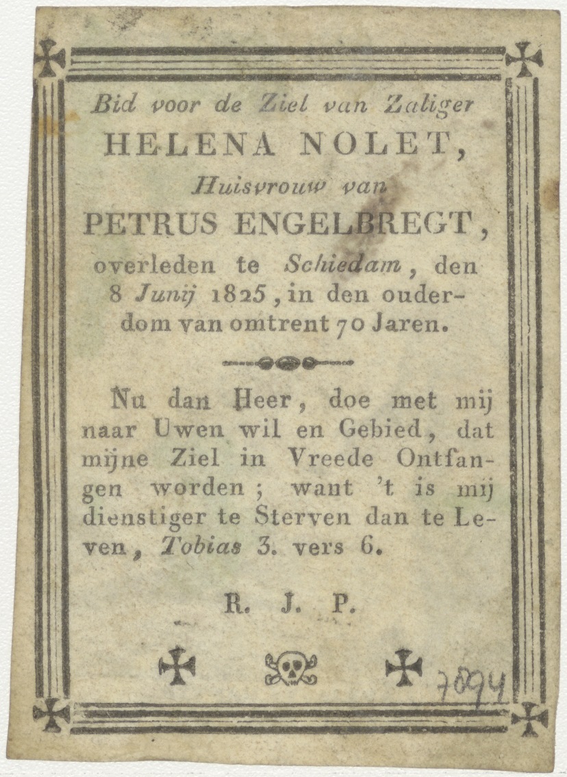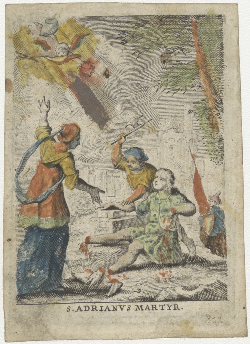 H. Adrianus, martelaar, ingekleurd, kz. Bid voor ziel Engelbrecht (+1825) Schiedam