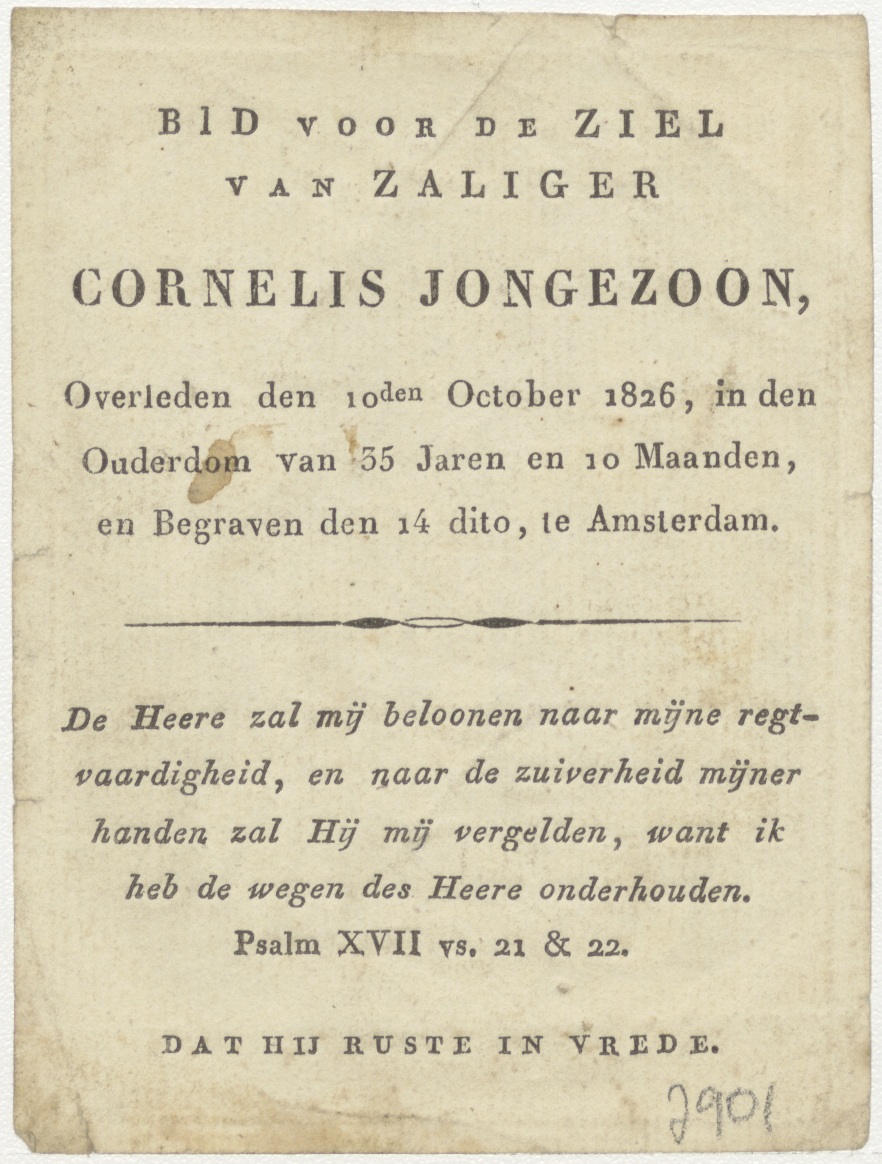 Maria met Christuskind, kz. Bid voor ziel Jongezoon (+1826) Amsterdam